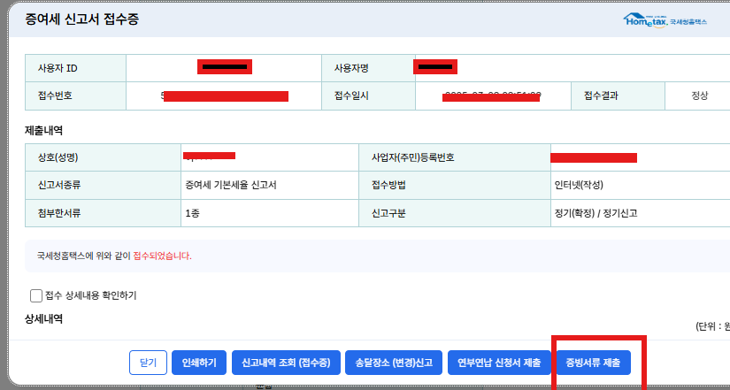 부속 서류 준비가 끝났다면 홈텍스에 신고를 해야 한다.